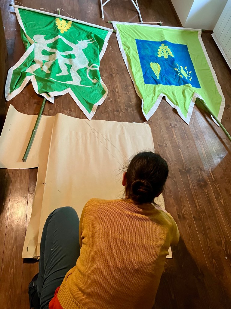 A zászlók felkerültek a bambusz rudakra.