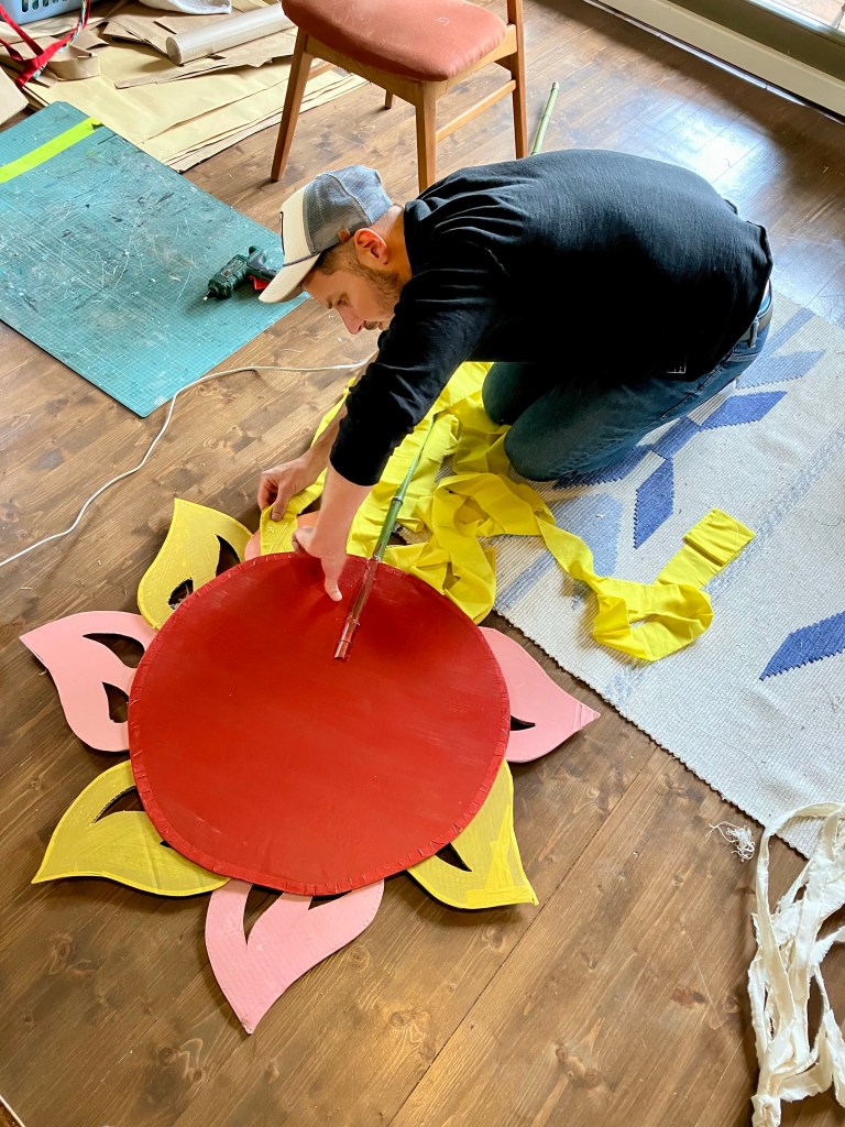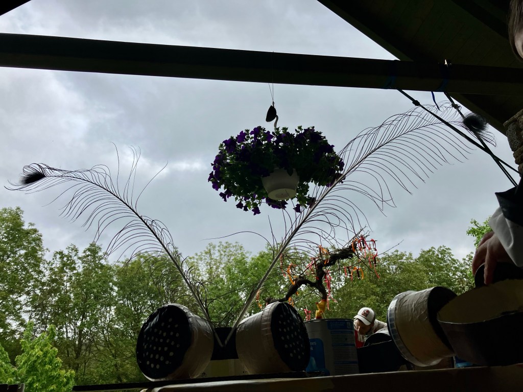Az angyalok szivárvány szalagjai is és Szent Orbán felvirágozása is pillanatok alatt kész lett.