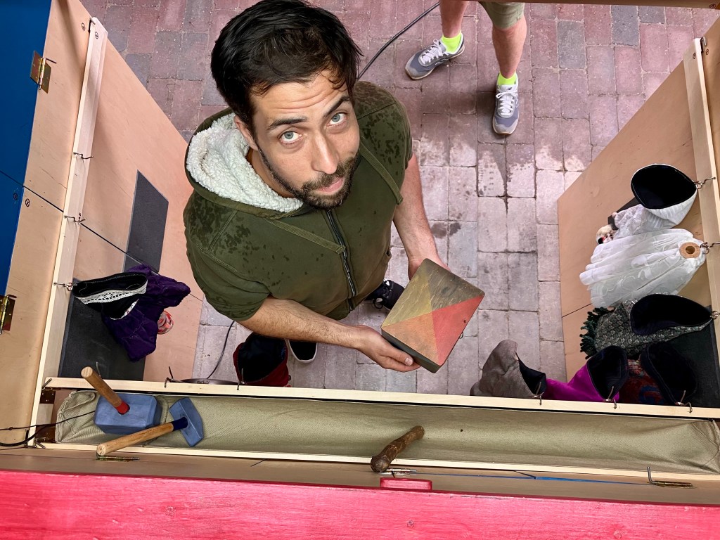 A KL Színház és a Magamura Alkotóműhely közös munkájának gyümölcse a VITÉZ LÁSZLÓ OTTHONRA LEL című előadásunk, melynek látványtervezője Boráros Szilárd, író, rendezője pedig Markó Róbert. A paravánon innen és túl is tudja, érzi mindenki, hogy egy igazán jó Vitéz László előadás lelke, motorja az előadó, a bábszínész. Előadásunkban VITÁNYI-JUHÁSZ ISTVÁN található a paraván mögött. Őt kérdeztem arról, hogy mennyi munka árán lehet otthonossá tenni a bábszínésznek a paraván mögötti játékteret.