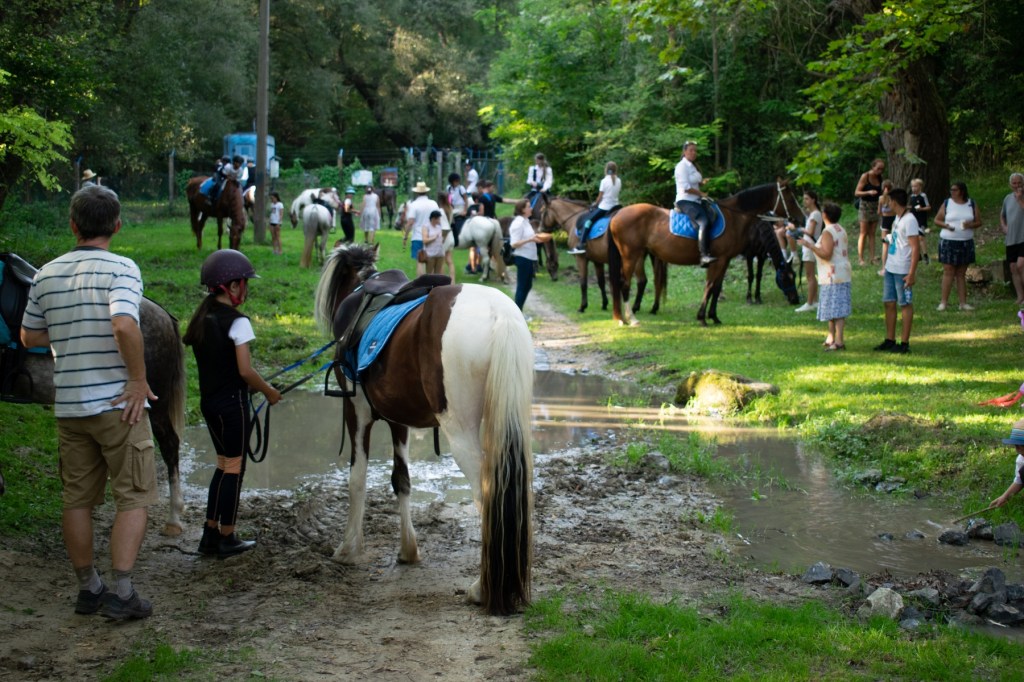 Ezután egy hosszabb szakasz következett, hiszen a felvonulás Balatonhenye felé vette az irányt. Egészen elképesztő volt a már szeptemberi napfényben, a Hegyestű mellett, a dombok, szőlőültetvények között vonulni. A menetszélben gyönyörűen lengtek az élénk színű krepp papírok. Az út melletti réteken, szántókon gyerekek vágtáztak, vezetőjük Eszter mellett, és körülöttük szabadon vágtáztak a kiscsikók. Az egész hangulat, látvány, még felidézve is könnyeket csal az ember szemébe. Amikor a hangszórókból dübörgő Besh o Drom muzsikájában egyszer csak meghallottuk a mondatot; “Járt-e már Magyarországon?”, a büszkeségnek, a boldogságnak és a nyugalomnak valami különleges egyvelege fogott el. Ez tényleg a “magyar Provence”. A szemlélődés után, a henyei kanyarban már láthattuk, hogy a kőhídnál két oroszlán áll. A felvonulókat meglátva életre keltek, és próbáltak felkapaszkodni a pótkocsikra.