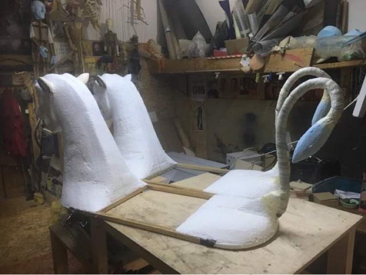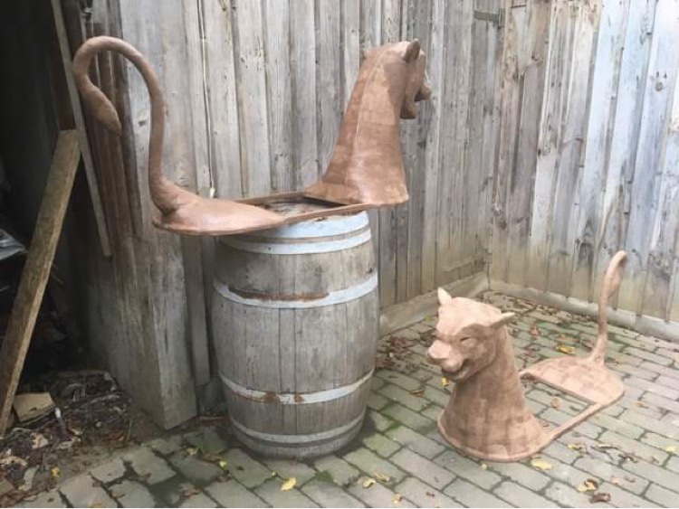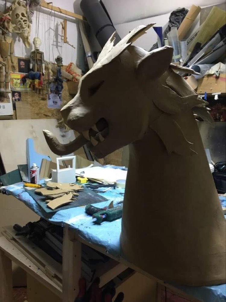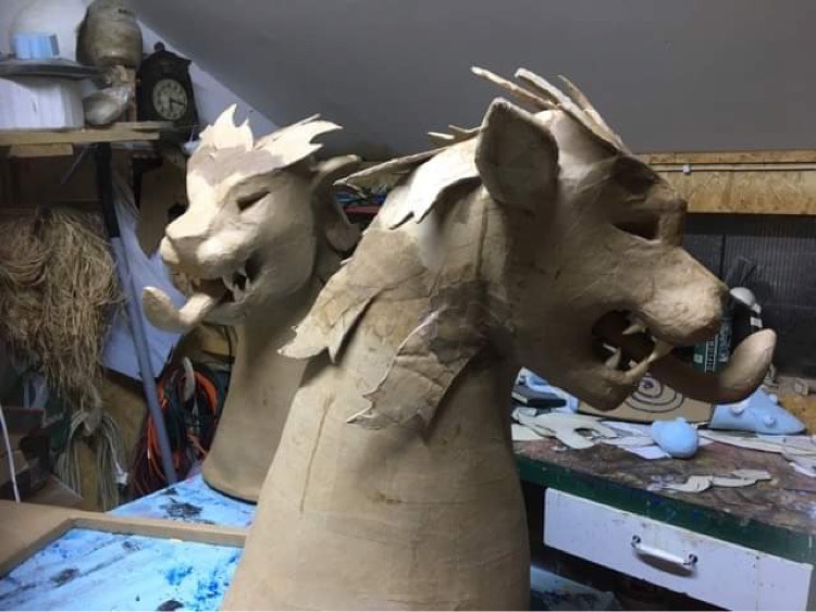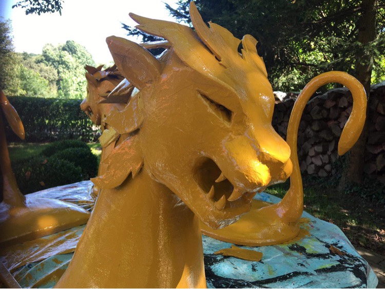 A “Gyertek át” – henyei találkozások (beszámoló itt) alkalmával nemcsak beszélgettünk, hanem Boráros Szilárd ezen alkalmakkor a résztvevők mögött készítette azokat a vonulós oroszlánokat, bábokat, melyek a szüreti felvonuláson keltek életre. Sőt mivel az egyik beszélgetős est épp megelőzte a falunapot, így Szilárd itt maradt henyében, és a falunapon is készítette az oroszlánokat. A közösség egy része tehát már az oroszlánok létrejöttét is végigkísérhette.