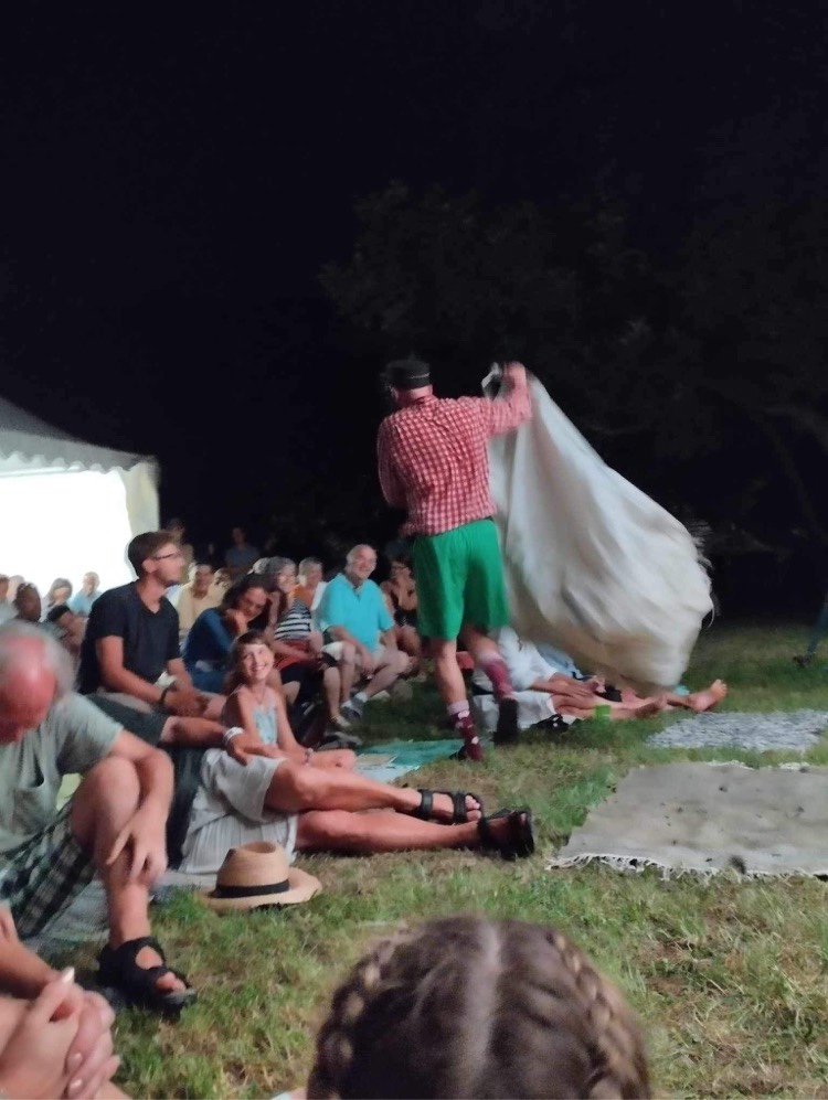 Másnap Kiscsőszre látogattunk a Pajta Fesztivál közönsége is megismerhette SÁRKÁNYÖLŐ SEBESTYÉN történetét, ahogyan egy hét múlva a Kapolcson tartózkodók is, hiszen a Művészetek Völgyén is volt szerencsénk ezt előadni.