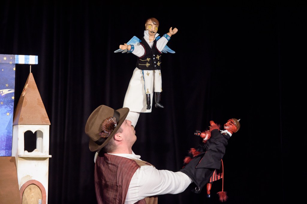 HM: Ez az előadás volt az első igazi sikerélményem az egyszemélyes produkcióim közül. A teljes előadás alapvetően a korábbi kutatásaimra és személyes tapasztalataimra támaszkodik. Azért áll közel hozzám, mert azt hiszem ebben az előadásban tudtam igazán létrehozni azt a gondolati rendszert, amit igazán fontosnak tartok egy bábszínházi produkció komplexitását illetően. Mind képzőművészeti, mind asztalosmunka szempontjából mérföldkő volt számomra ez a projekt. Mindemellett a szövegkönyv Nagy Orsolya dramaturg keze nyomán az általam gyűjtött, vagy írt szövegekből állt össze. A kutatásaimhoz kapcsolódóan pedig valamit megsejdítettem abból az animatív cselekvésből, amik áthatották a régi idők ilyesfajta szertartásjátékait. A tárgyanimáció, mint statikus figurális jellegü mozgatási metódus markánsan megjelenik a produkcióban, ugyanis egyedüli játékosként ez a legegyszerűbb módja a történetmesélésnek.